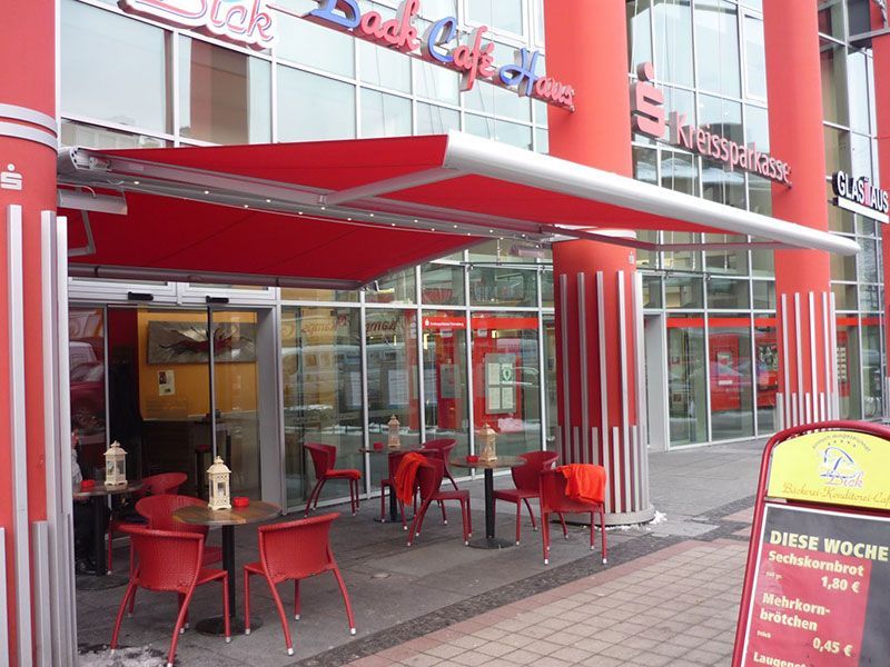 Wir bieten Ihnen eine große Auswahl an Markisen für Zuhause oder Gewerbe. Ob Senkrechtmarkisen, Wintergartenmarkisen, Terrassenmarkisen, Seitenmarkisen - unsere Angebotspalette ist riesengroß.